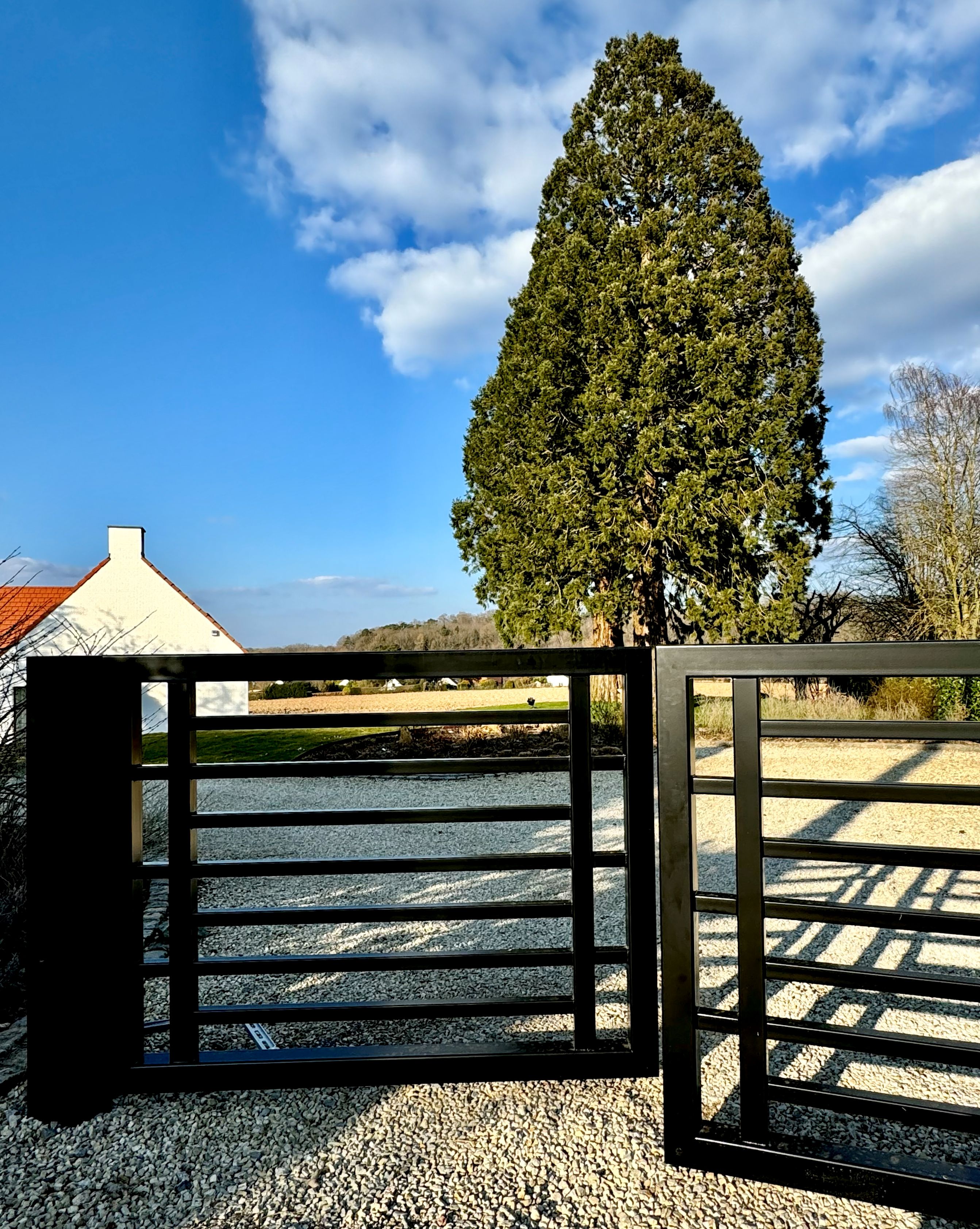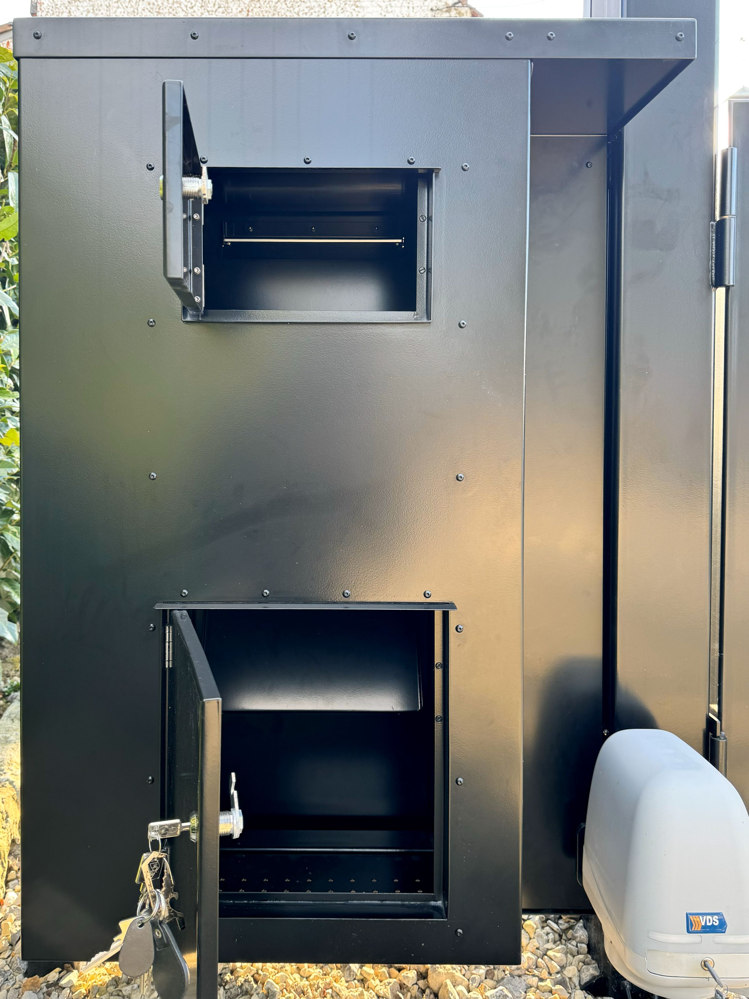 portail double, battants inégaux, motorisation VDS, RAL9005 satiné