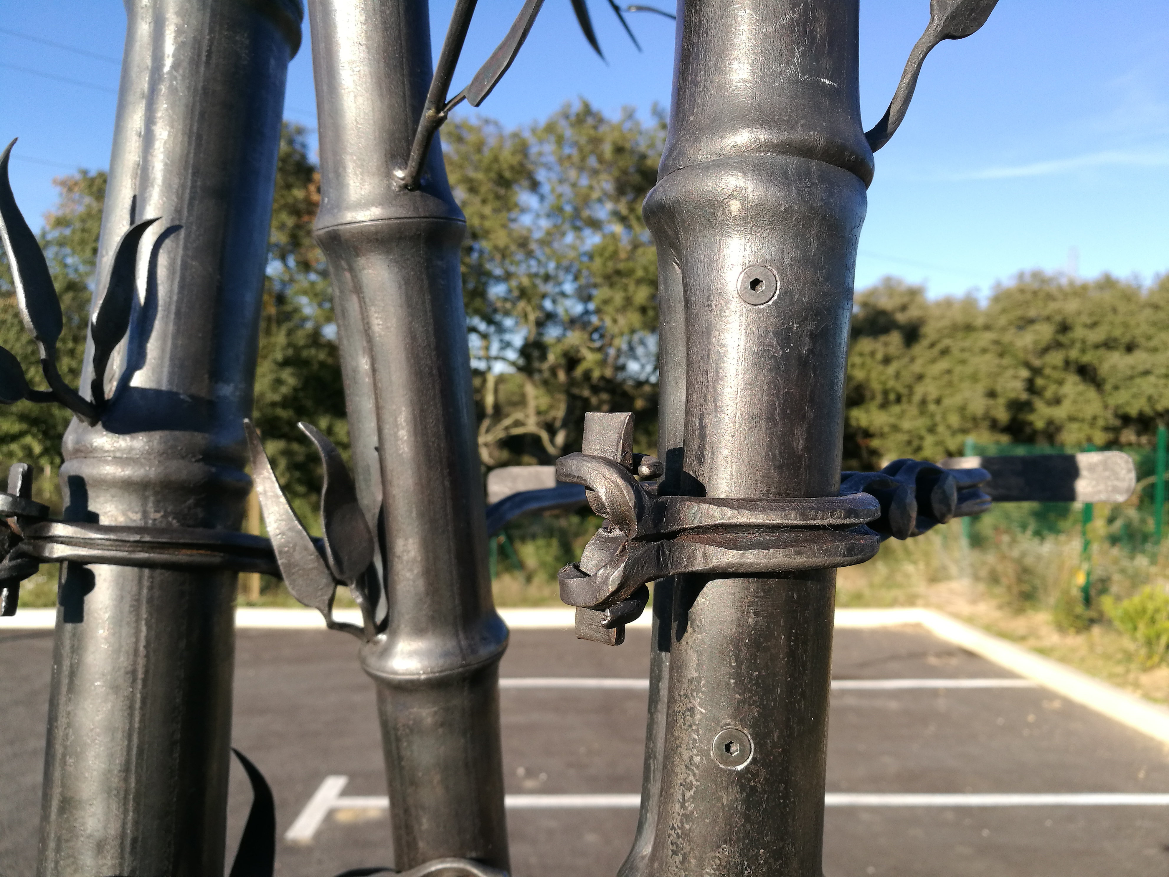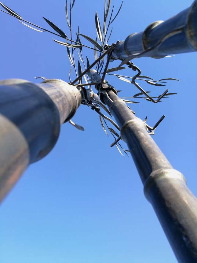 Sculpture acier, bambou et son feuillage