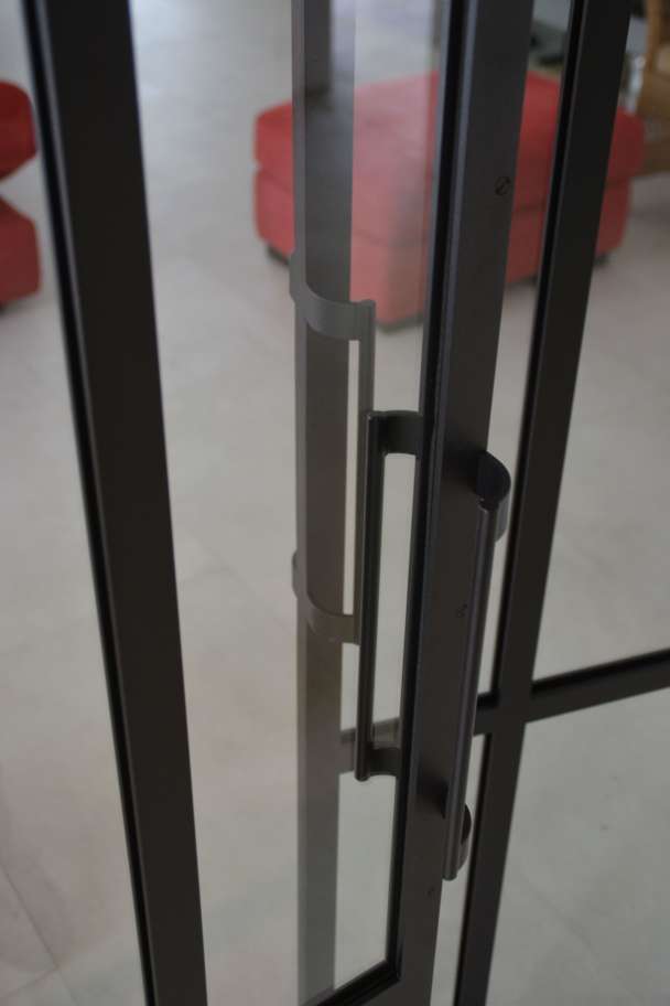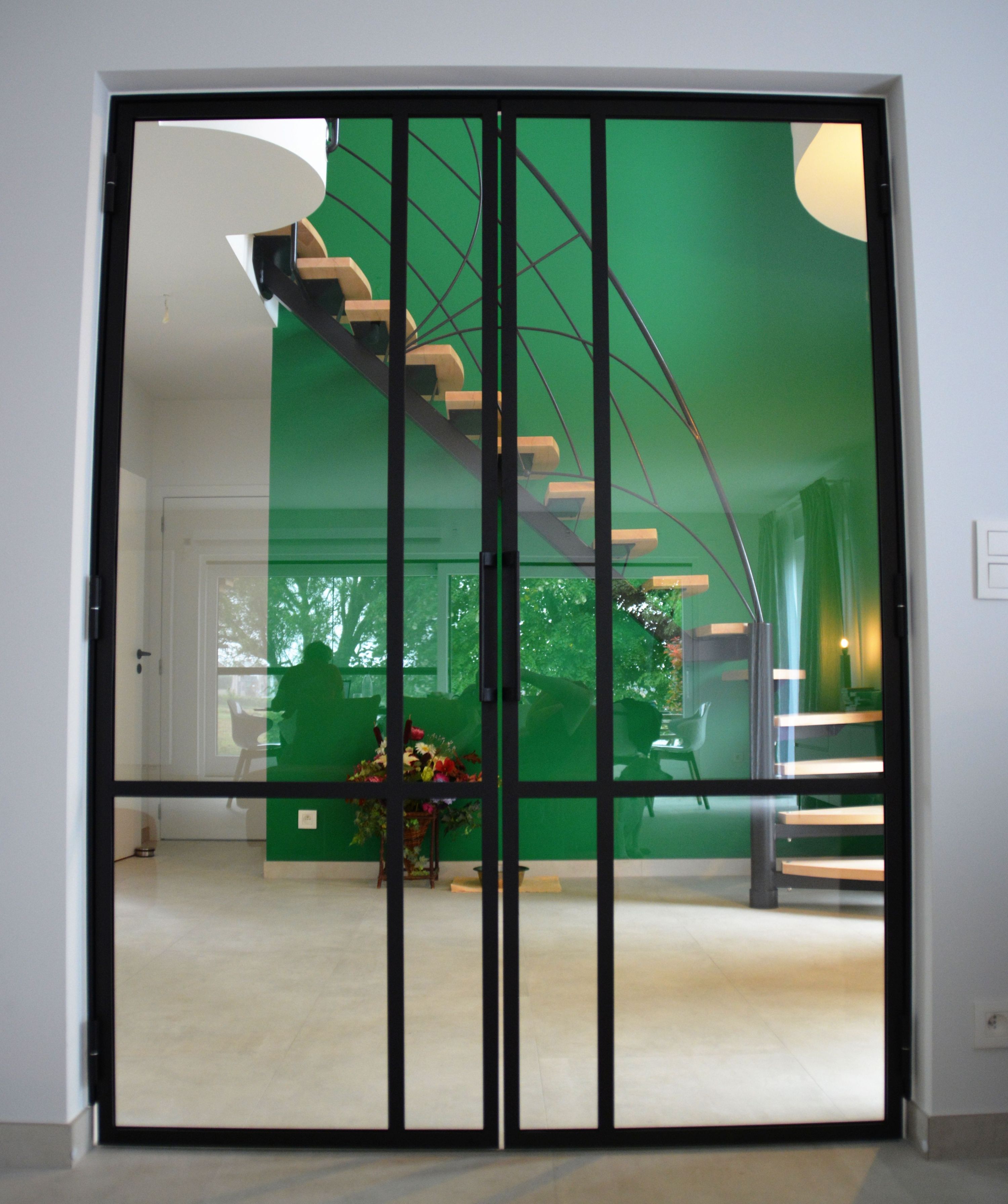 Doube porte vitrée, poignée à façon, verre feuilleté, RAL9005 texturé