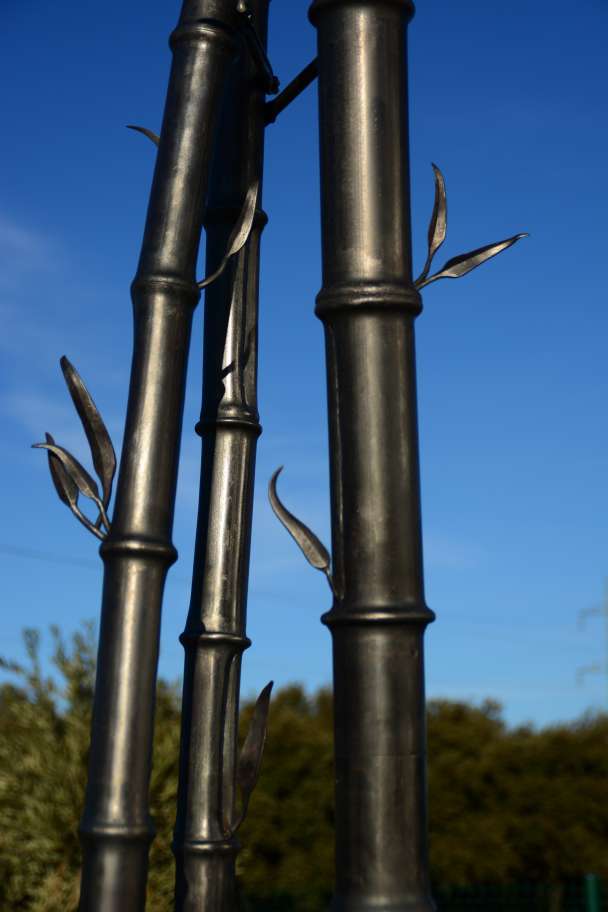 Sculpture acier, bambou et son feuillage
