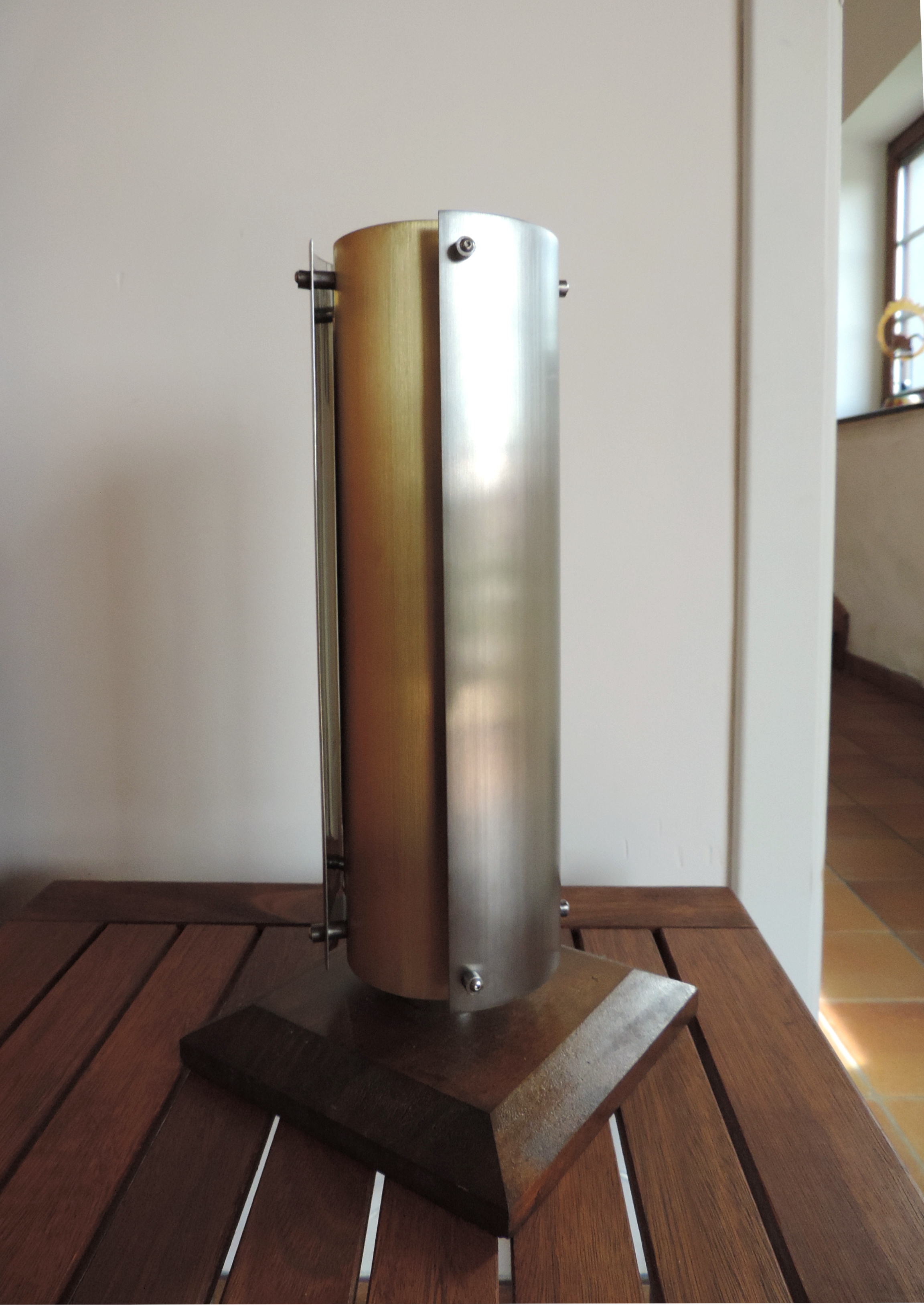 Lampe, tôle inox et laiton